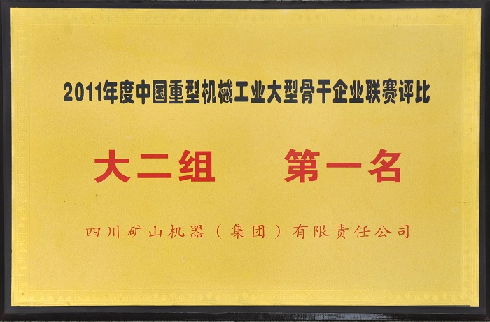 中國重機協(xié)會主持召開的2011年度中國重型機械工業(yè)大型骨干企業(yè)廠際聯(lián)賽評比中,川礦集團榮獲“大二組”第一名。其中“總資產(chǎn)貢獻(xiàn)率”、“成本費用利用率”、“全員勞動生產(chǎn)率”、“工業(yè)經(jīng)濟效益綜合指數(shù)”、“鋼材利用率”、“人均創(chuàng)利稅”、“銷售利潤率”、“單位工資創(chuàng)造工業(yè)增加值”、“工傷事故死亡人數(shù)最低”九個單項指標(biāo)列聯(lián)賽第一名。